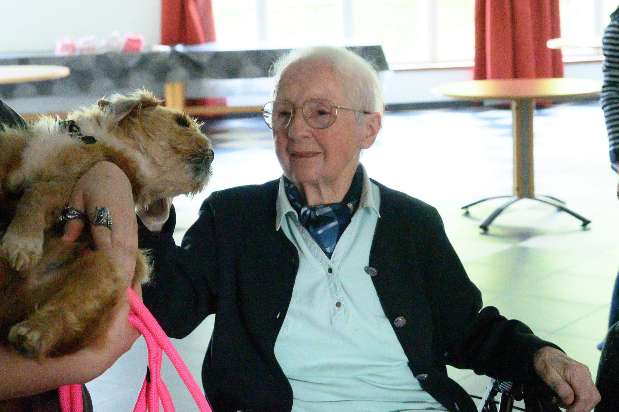 Ce fut un moment de joie partagée : les résidents, tout comme les chiens, étaient ravis de cette rencontre !