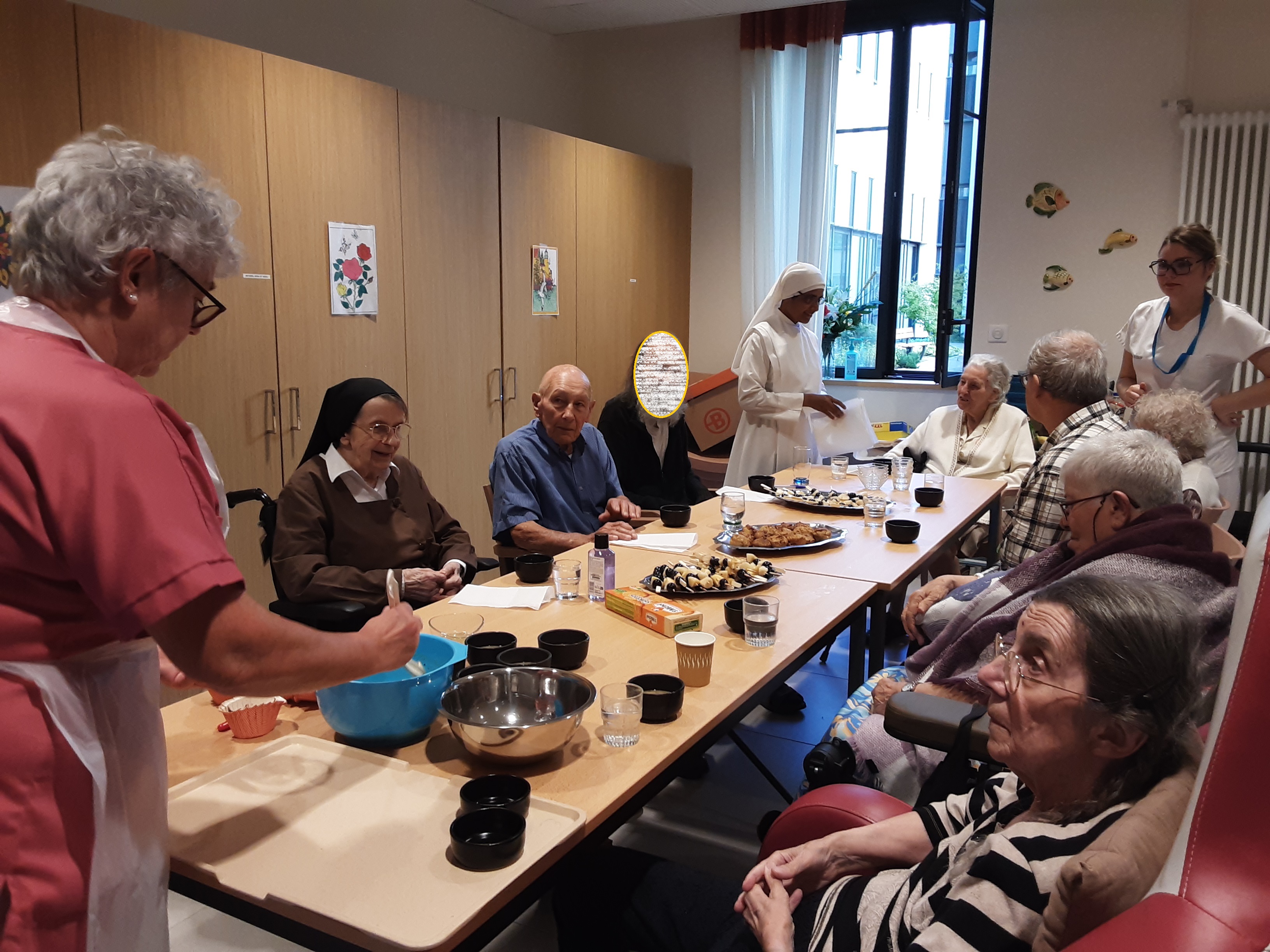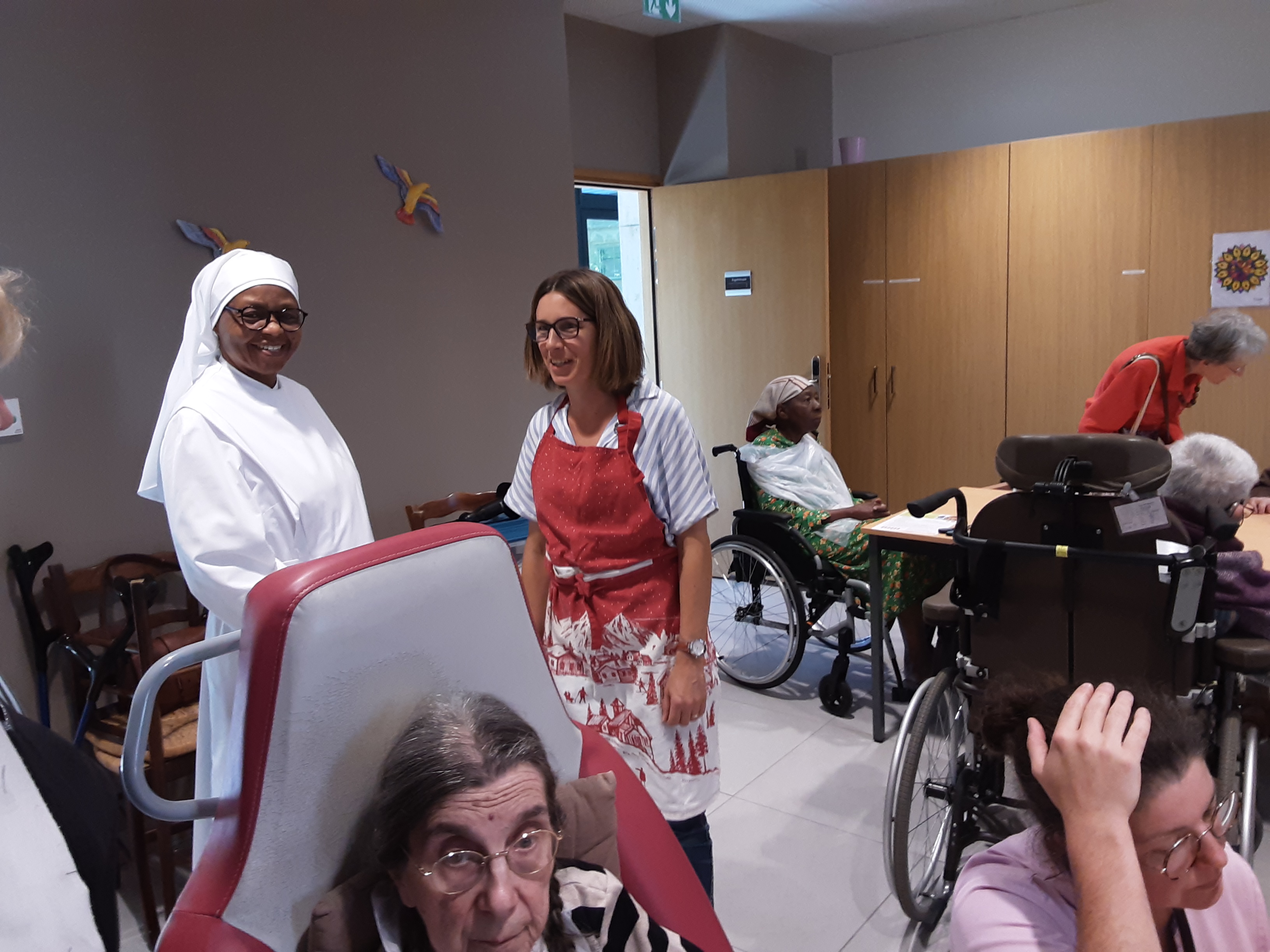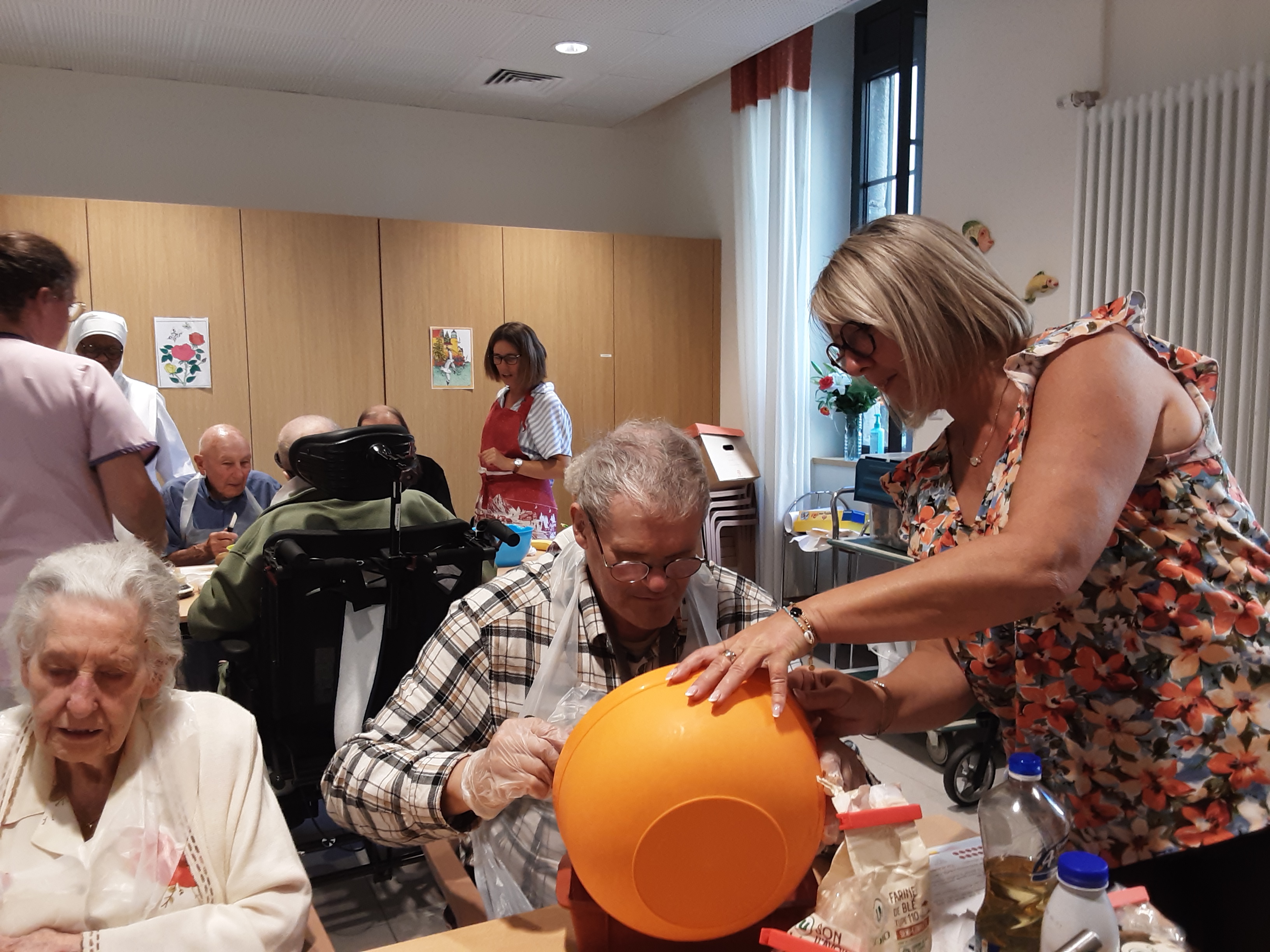 Quelle ardeur au travail, cela faisait plaisir à voir ! Il fallait peser, couper, brasser… et tout cela, bien sûr, dans une très bonne humeur partagée entre nos aînés, les salariées et les Petites Sœurs.