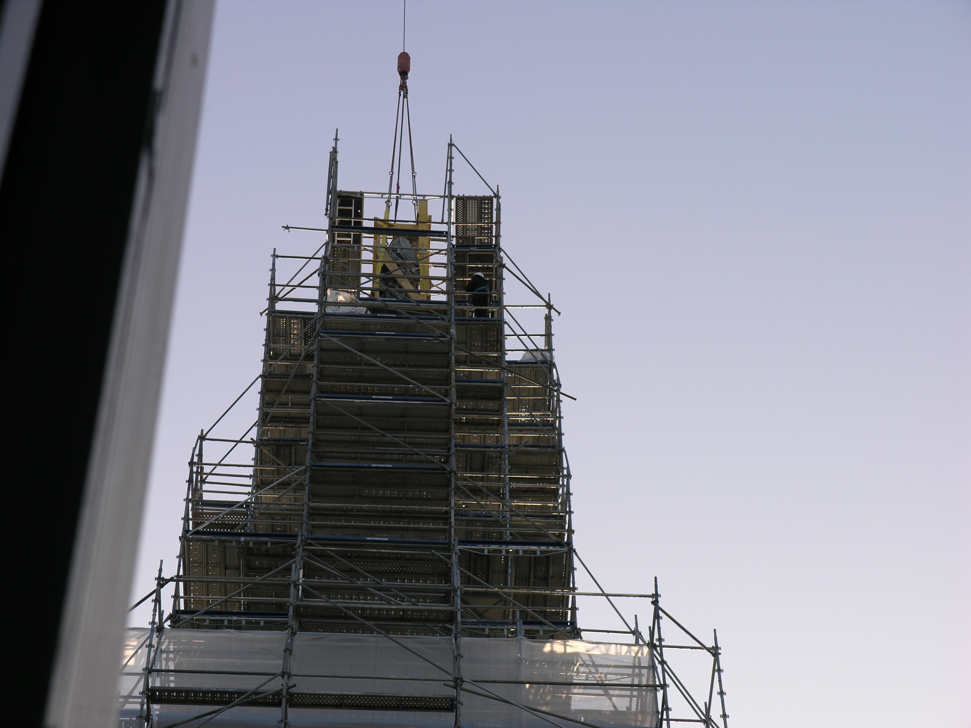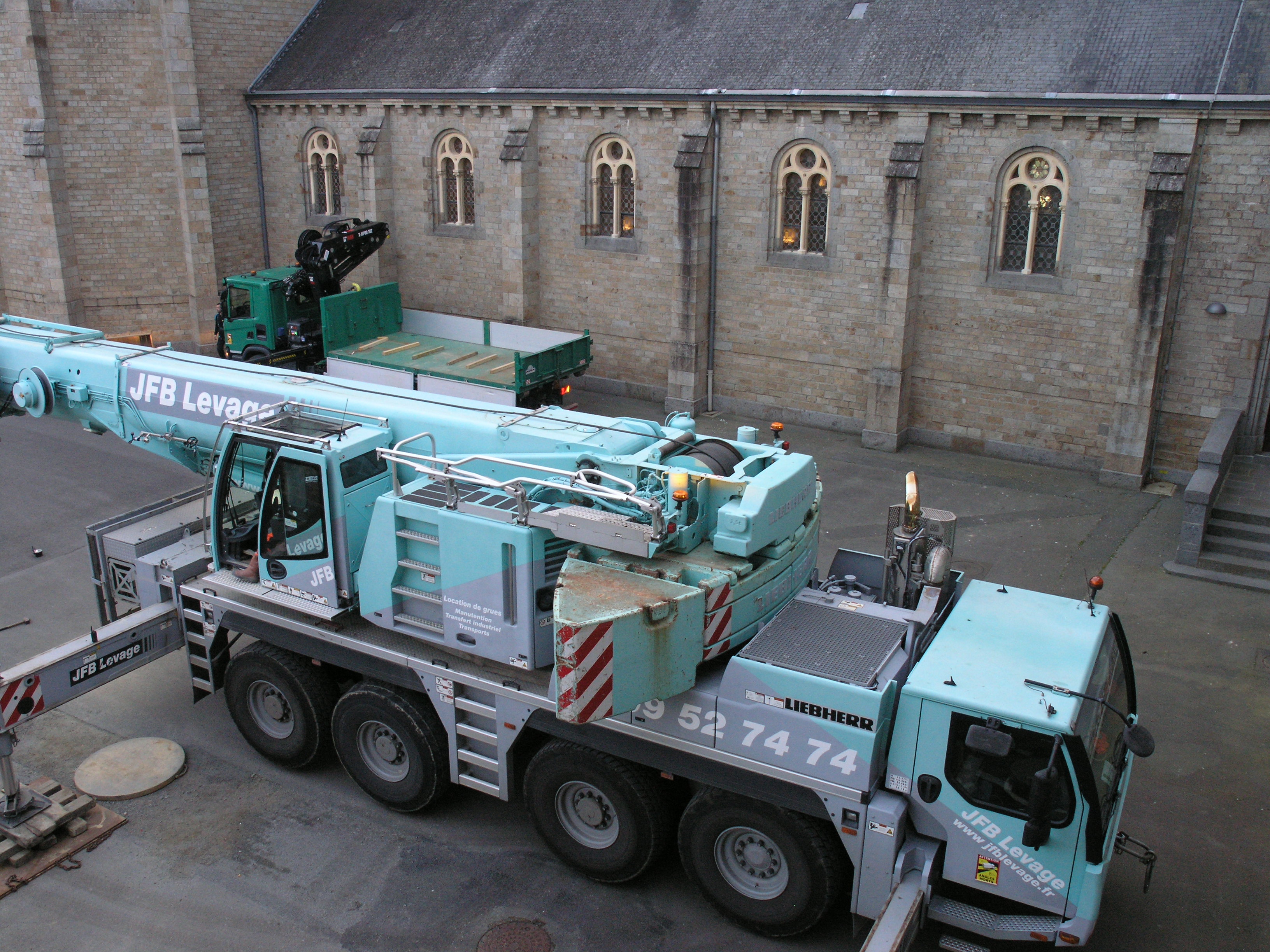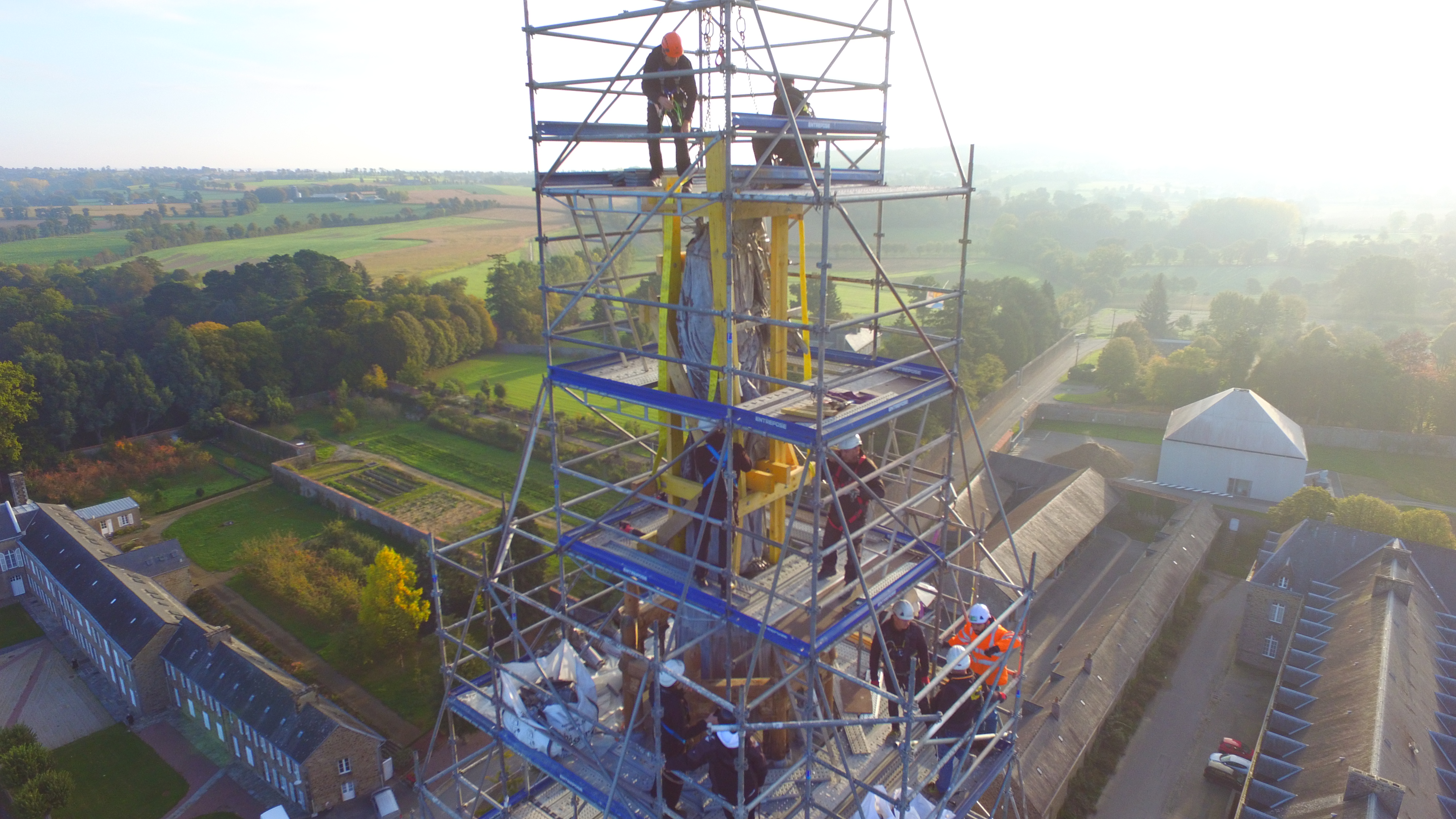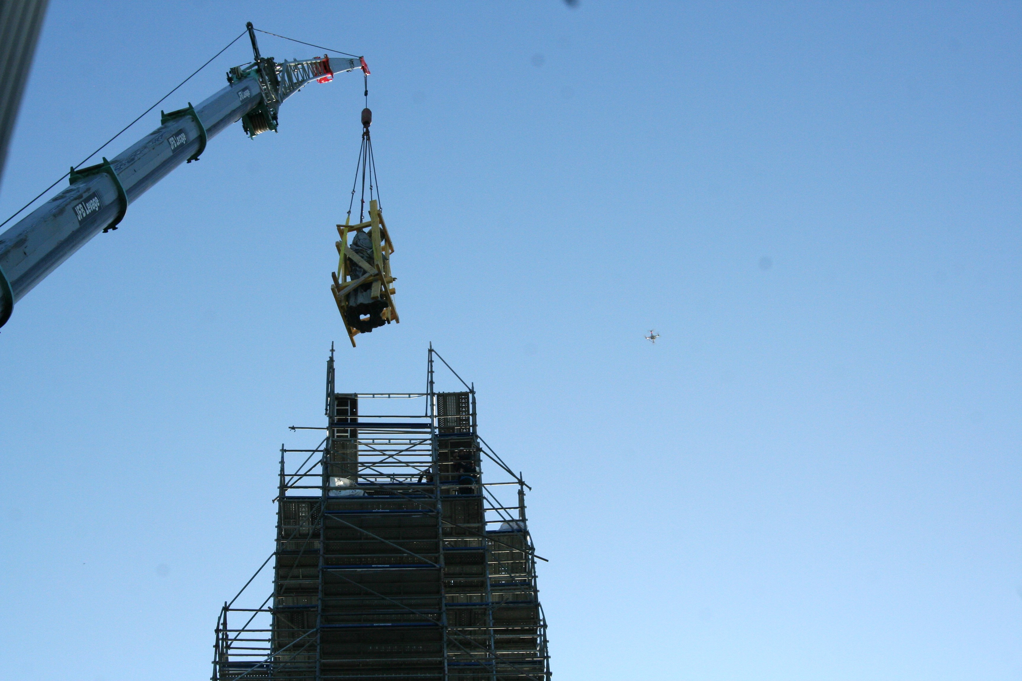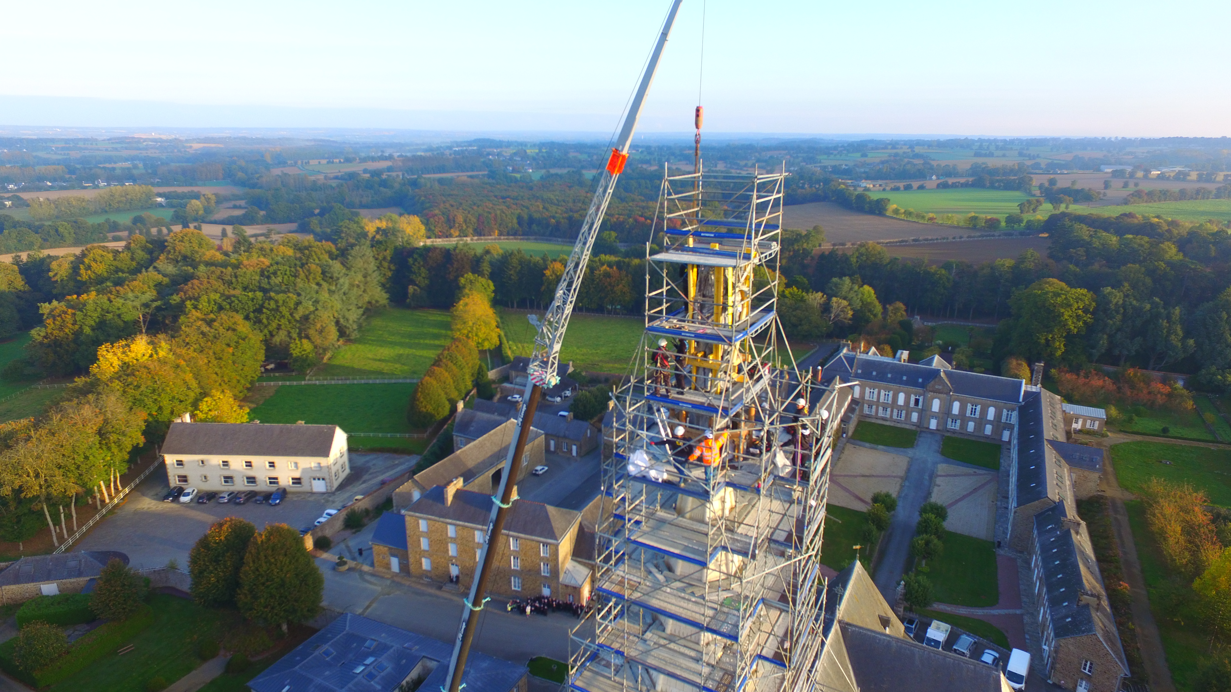 Ce matin, la statue de Saint Joseph, installée au sommet de la tour de la Maison Mère des Petites Sœurs des Pauvres à Saint-Pern, a été descendue à l’aide d’une grande grue. Les Petites Sœurs, les salariés et plusieurs habitants du quartier s’étaient donné rendez-vous pour assister à cette descente impressionnante. La statue est ensuite partie en direction d’Angers pour être restaurée.