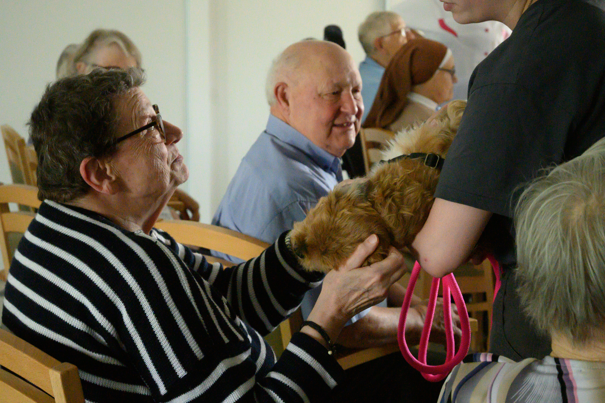 Ce fut un moment de joie partagée : les résidents, tout comme les chiens, étaient ravis de cette rencontre !