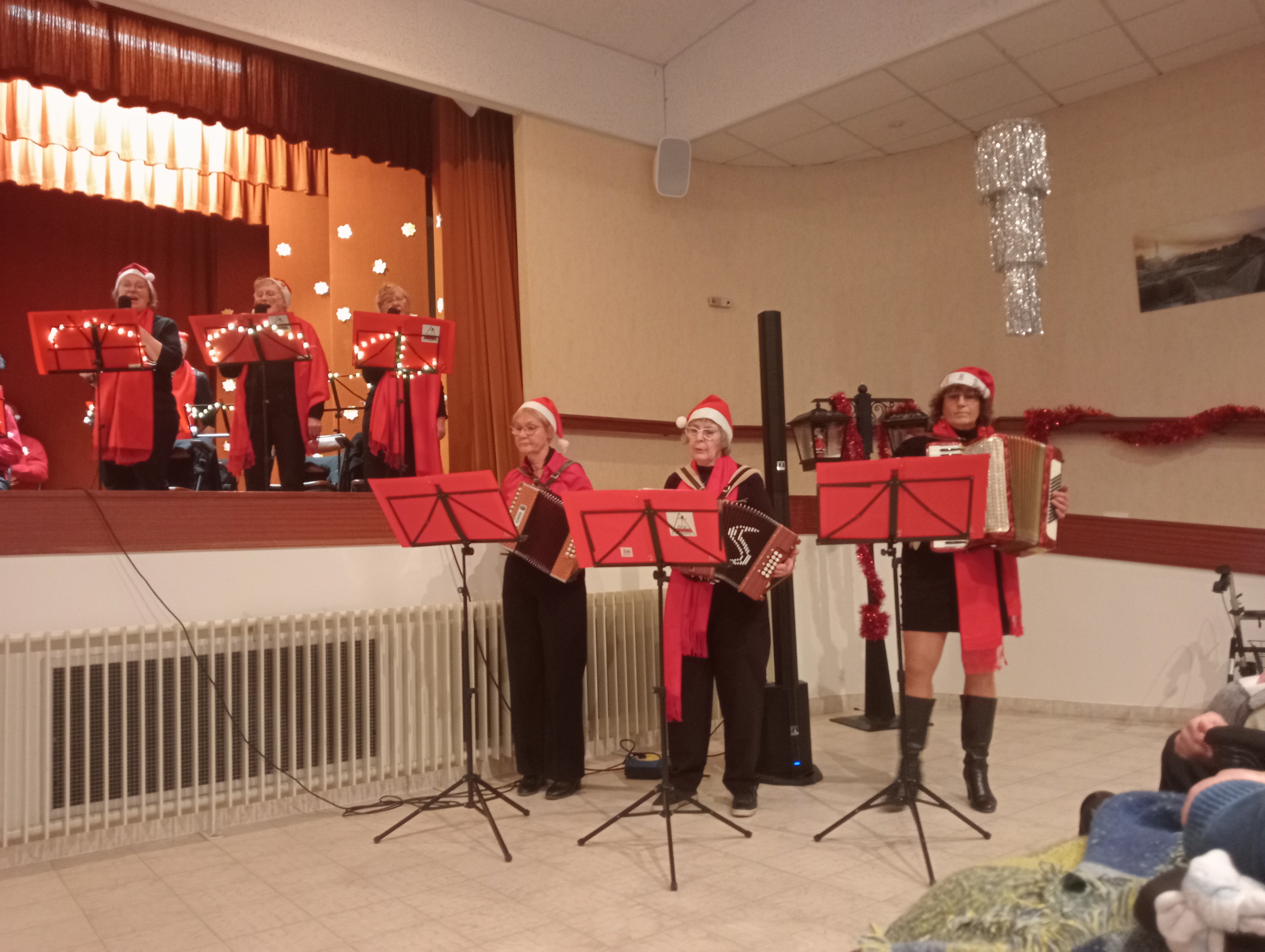 Comme chaque année, Ma Maison de Saint‑Servan a eu la joie d’accueillir le groupe A TEMPO, composé d’une vingtaine de chanteurs et musiciens bénévoles. Ce groupe, engagé depuis plus de 25 ans, a offert aux résidents un moment musical d’une grande qualité. Cette édition a été marquée par l’arrivée d’une chanteuse professionnelle d’opéra, qui a interprété un magnifique Ave Maria, suscitant une profonde émotion parmi l’assemblée.