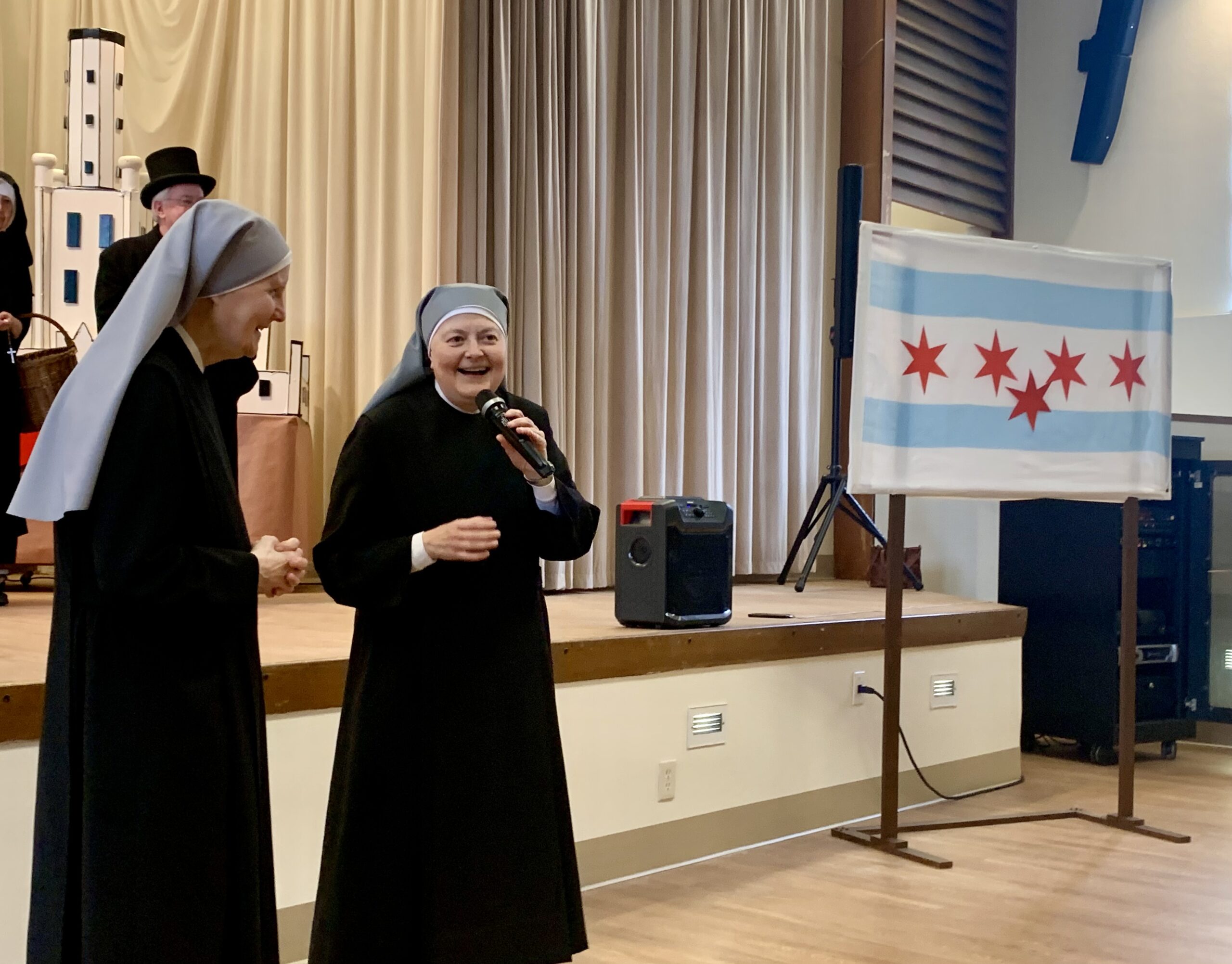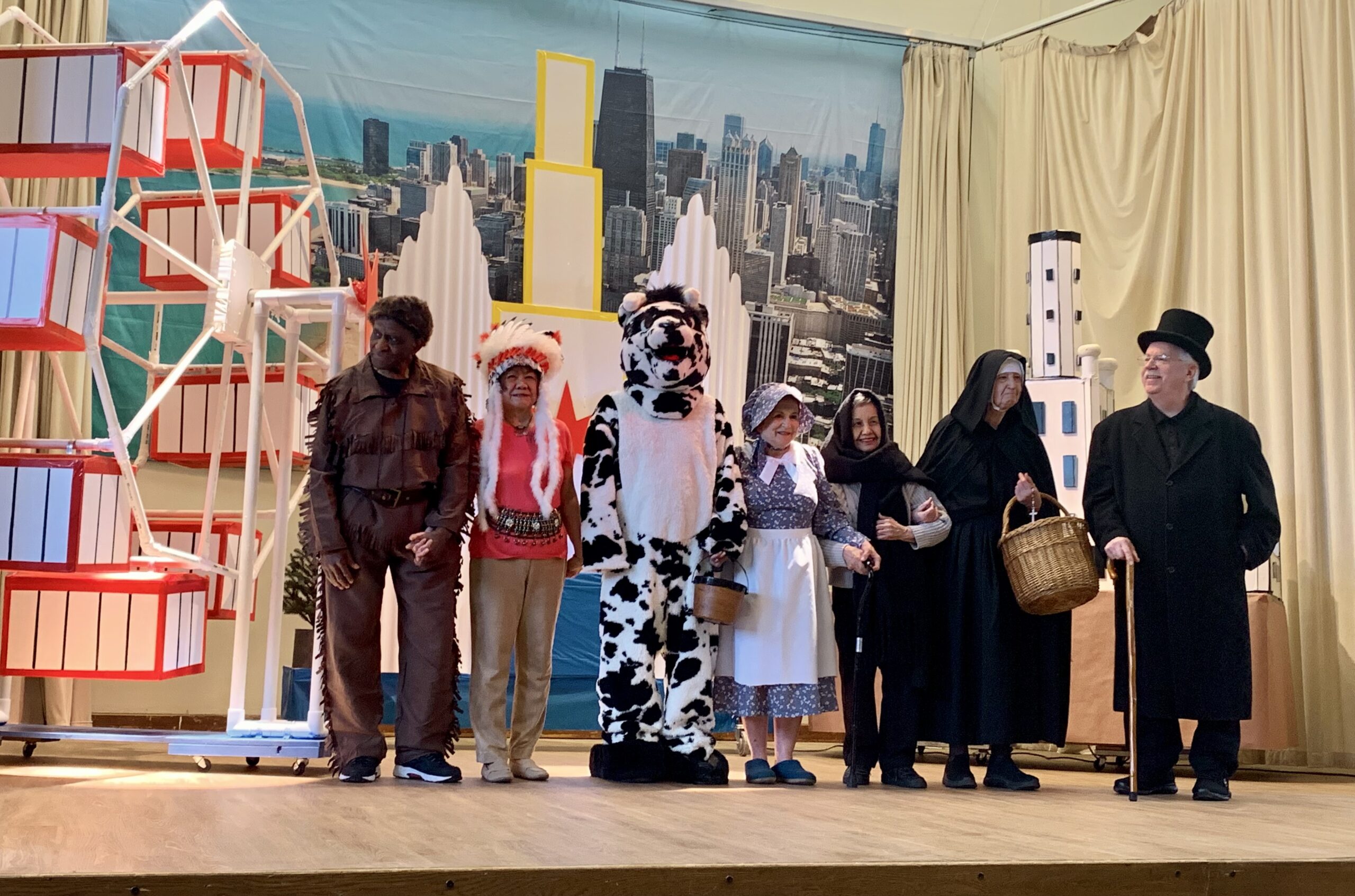Mère générale continue sa visite aux Etats-Unis. Elle est arrivée à la Maison de Chicago où elle a été accueillie par un spectacle racontant l’histoire de la ville. Le décor était splendide et la joie des résidents et des salariés bien présente.