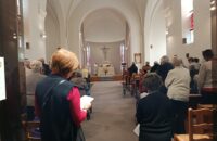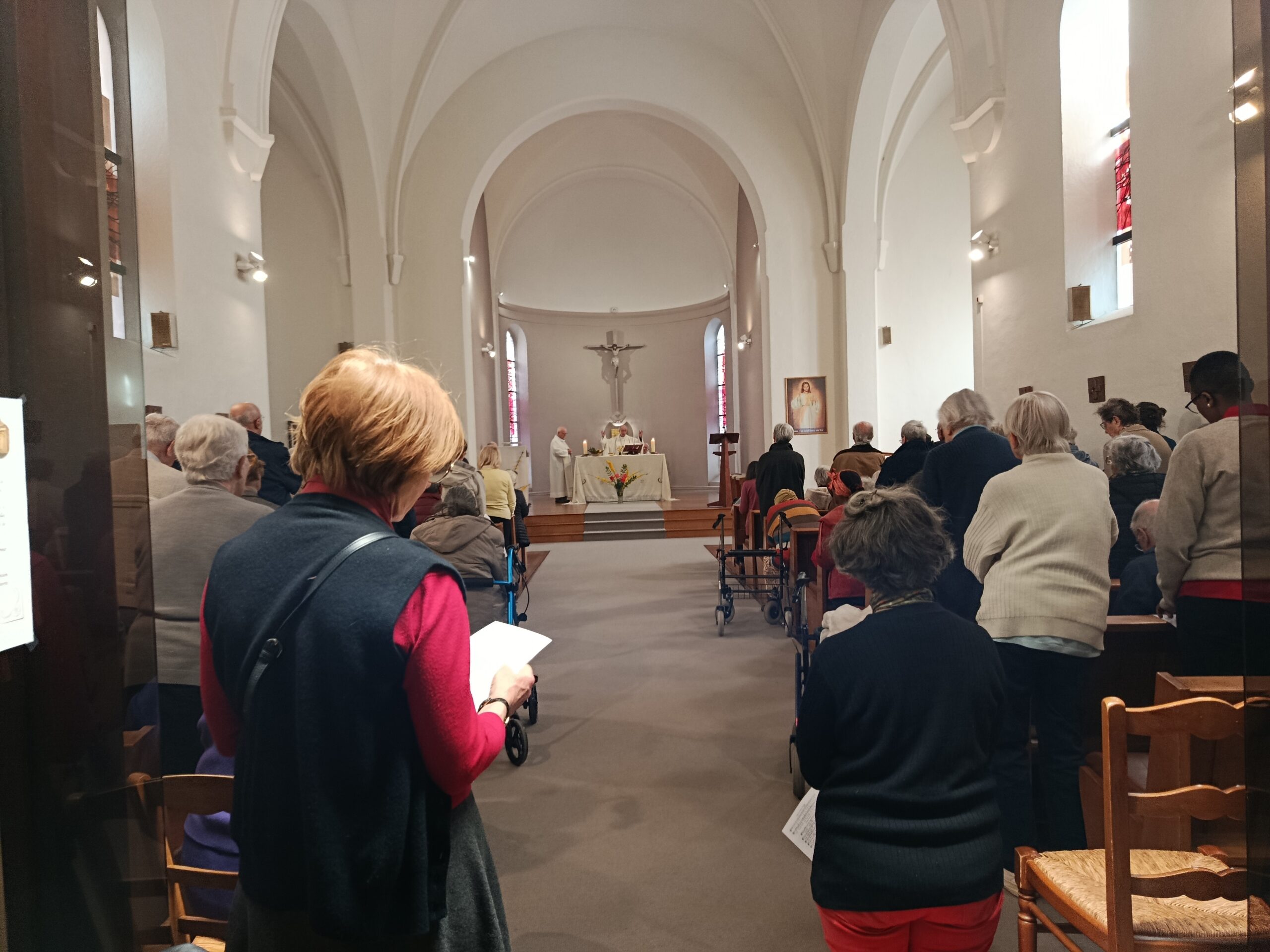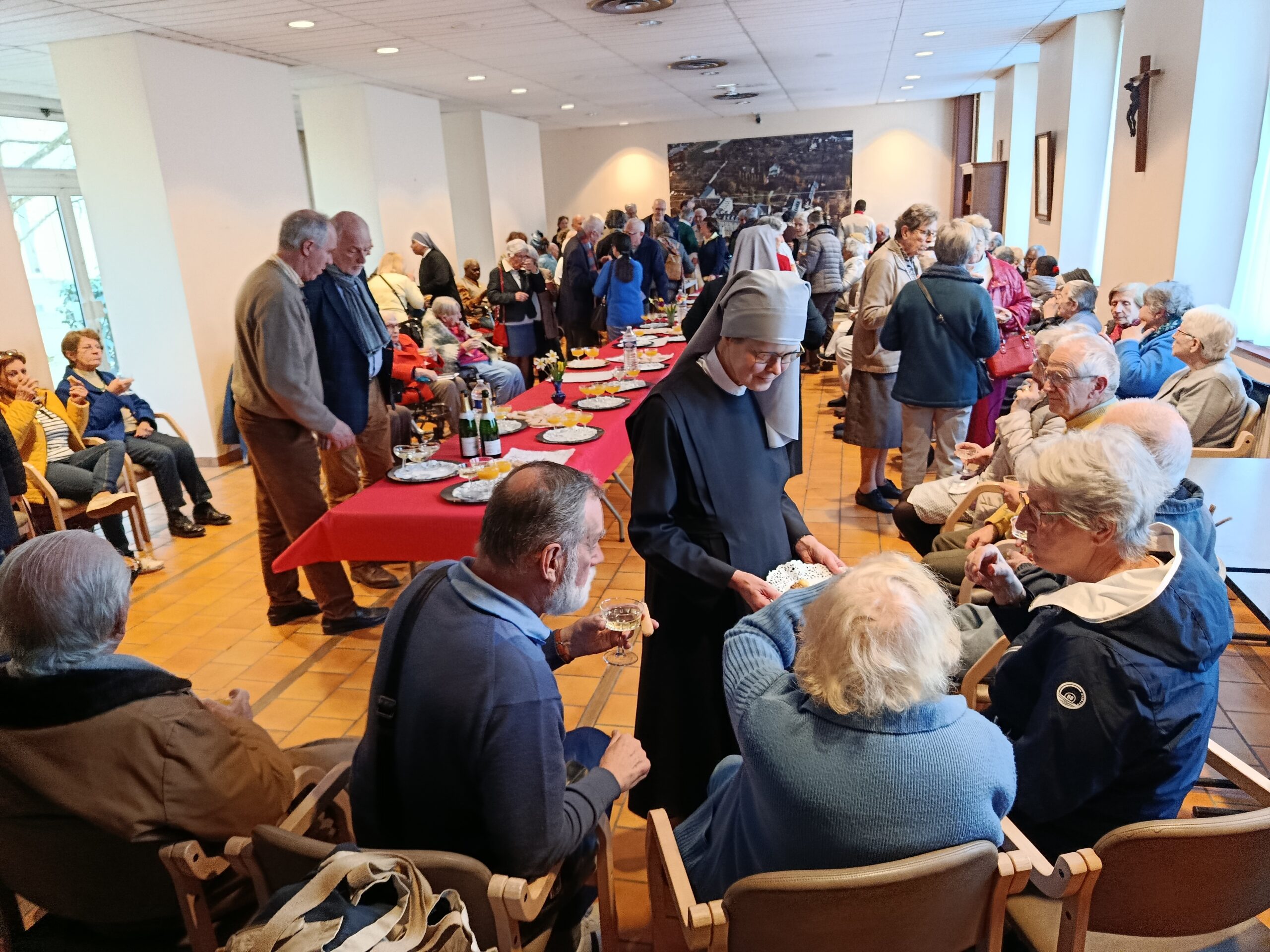 À l’issue de la messe, une rencontre amicale était prévue. Nombreux — très nombreux — sont ceux qui avaient répondu positivement : près de 80 par courrier. La chapelle était comble et particulièrement priante.