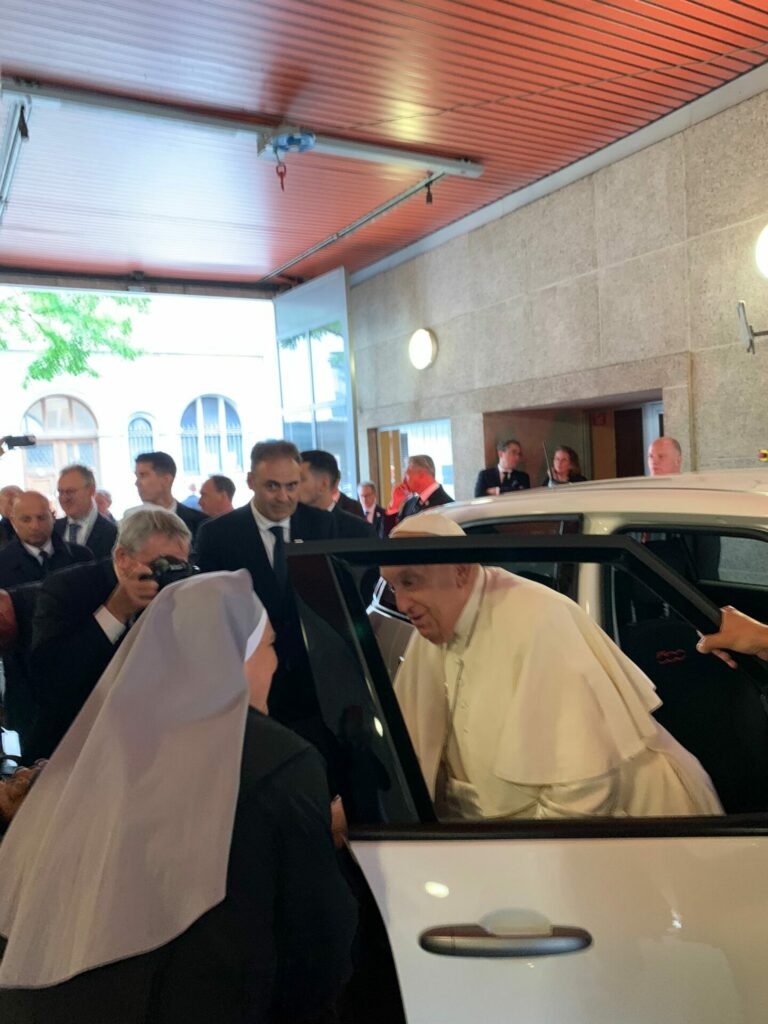 Vendredi dernier, le 27 septembre, la maison de Bruxelles a eu la grande joie de recevoir le pape François dans ses murs. Une visite qui a pris par surprise les résidents et les Petites Sœurs, mais surtout qui les a remplis de joie ! Le Pape a béni l'assistance puis, avec beaucoup de simplicité, il a dit quelques mots, et a serré la main de tous les résidents... Beaucoup d'émotion, de joie et de simplicité dont les murs de la maison entendront parler pendant longtemps ! Merci Très Saint Père, nous prions pour vous !