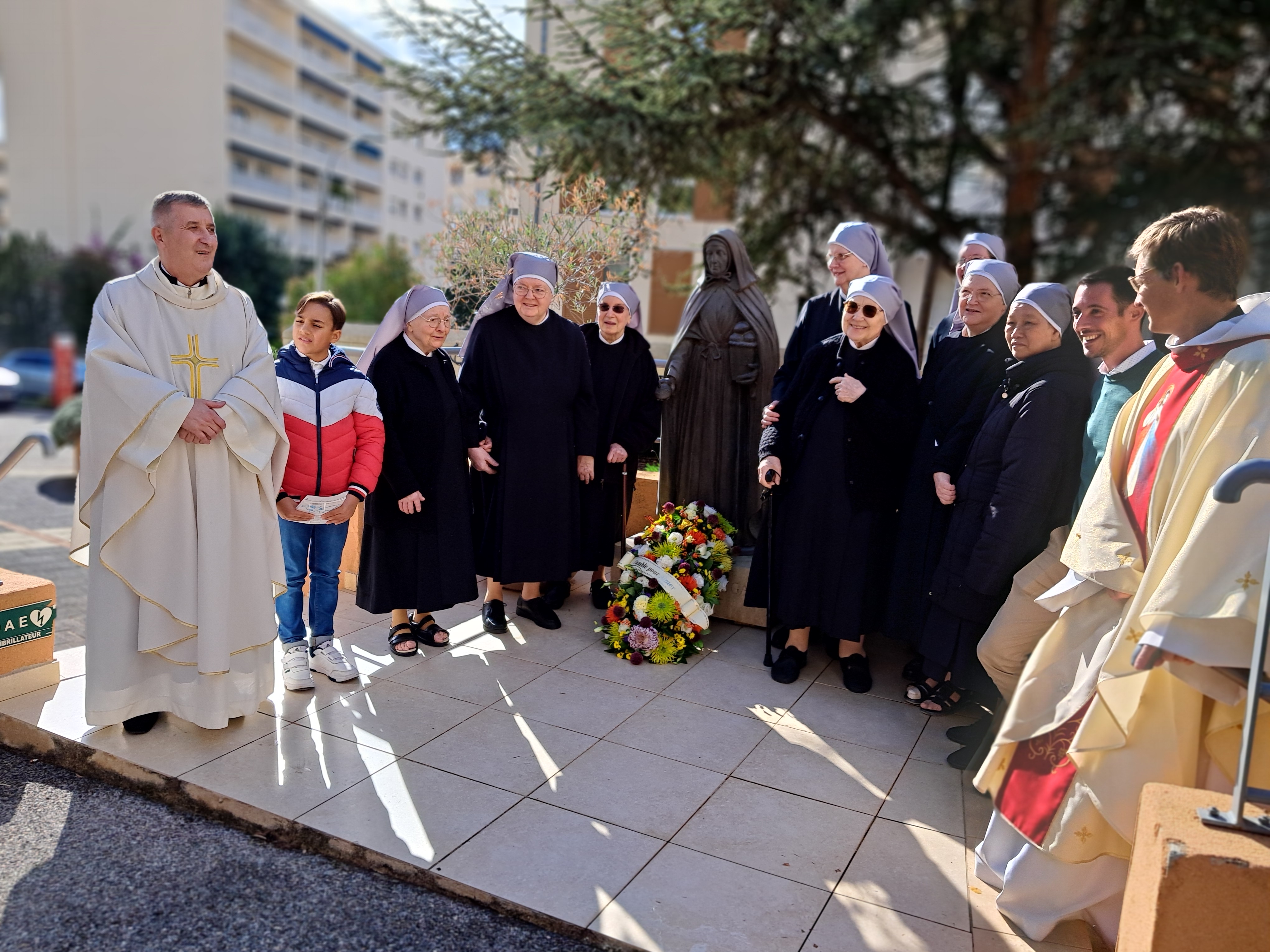 Après la bénédiction et le dépôt d’une gerbe au pied de la statue de Jeanne Jugan, Petites Sœurs, résidents et invités ont partagé un repas fraternel, suivi d’une table ronde sur la mission des Petites Sœurs des Pauvres. Joie, émotion et gratitude ont marqué cette journée, fruit de la persévérance de Michèle Castagna et de l’accueil chaleureux de la maison.