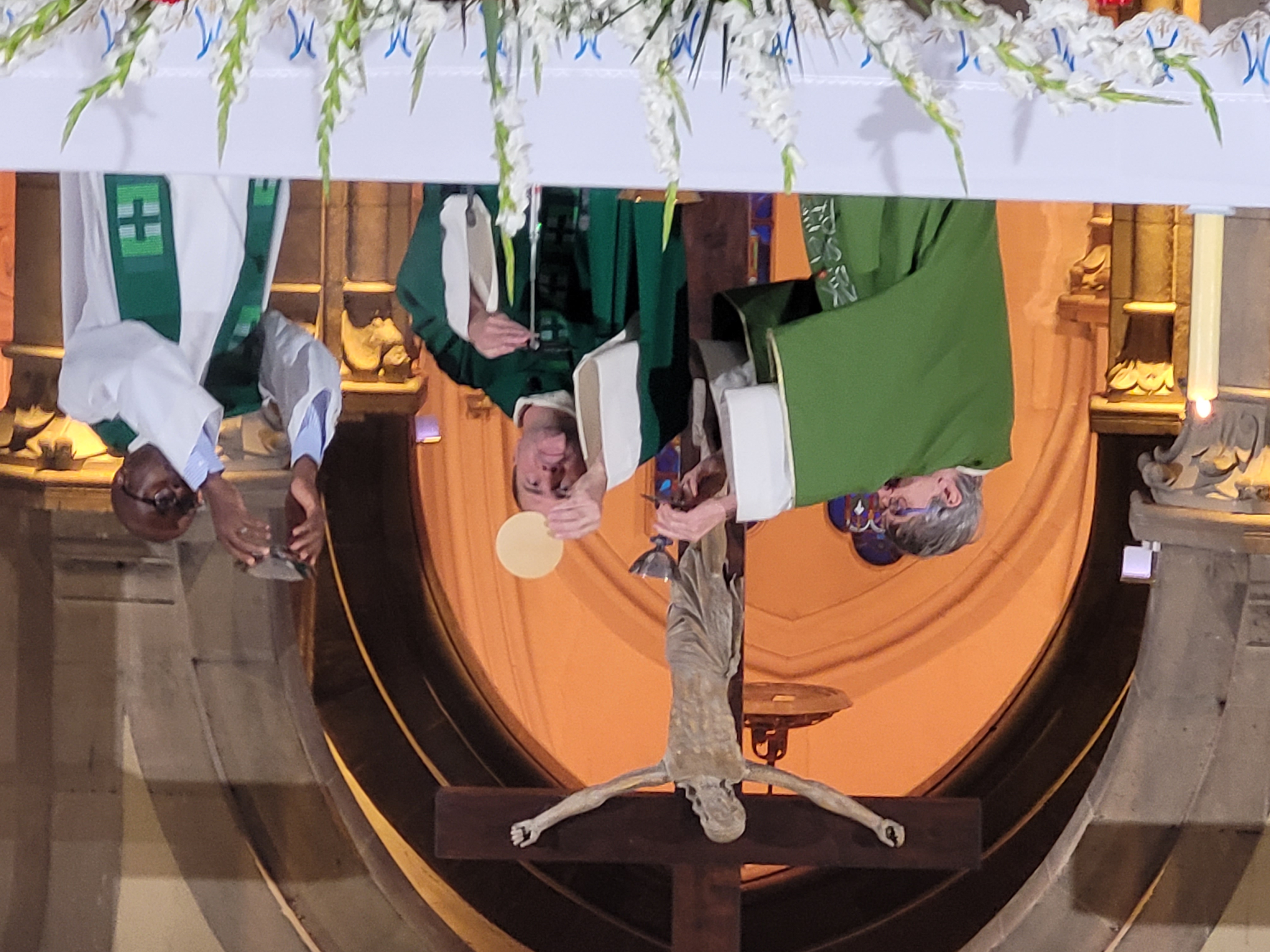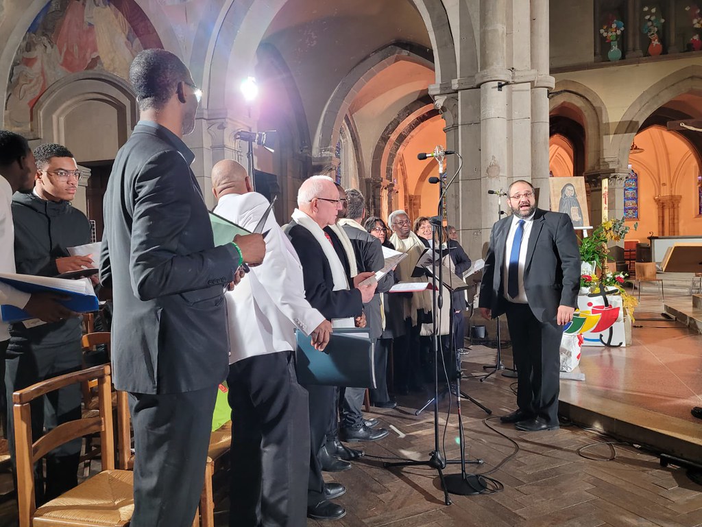L’église s’est progressivement remplie de paroissiens de Saint-Denis ainsi que de nombreux amis et bienfaiteurs. Selon le curé de la paroisse, environ 400 personnes étaient présentes. La chorale diocésaine, forte d’une trentaine de membres, a magnifiquement entraîné l’assemblée par la beauté des chants.
