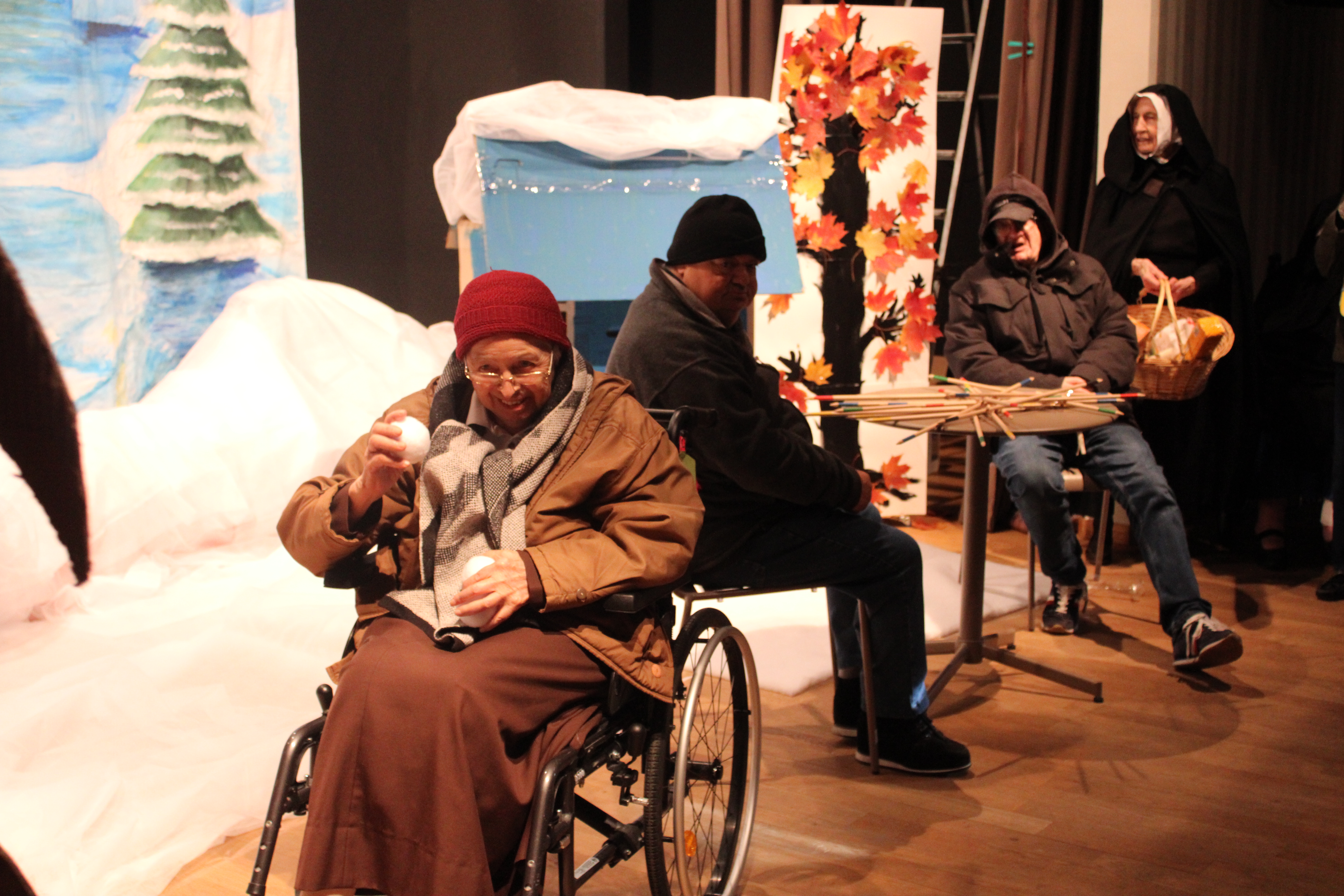 Les Associés Jeanne Jugan ont organisé un défilé aux couleurs des pays visités par Sœur Cécile, puis les résidents à l'aide de spectacles ont recréé la magie des hivers québécois avec luges, skis, bataille de boules de neige et tire d’érable, le tout accompagné de la lecture de son récit de vie.
